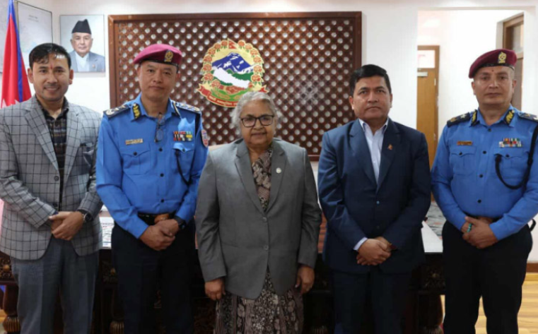 काठमाडौं : नेपाल प्रहरीका महानिरीक्षक चन्द्रकुबेर खापुङले प्रधानमन्त्री सुशीला कार्कीसँग बिदाइ भेट गरेका छन्। सिंहदरबारस्थित प्रधानमन्त्री तथा मन्त्रिपरिषद् कार्यालयमा खापुङ आफ्ना उत्तराधिकारी दानबहादुर कार्कीका साथ उपस्थित भएका थिए।